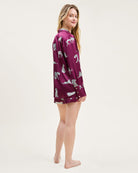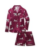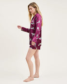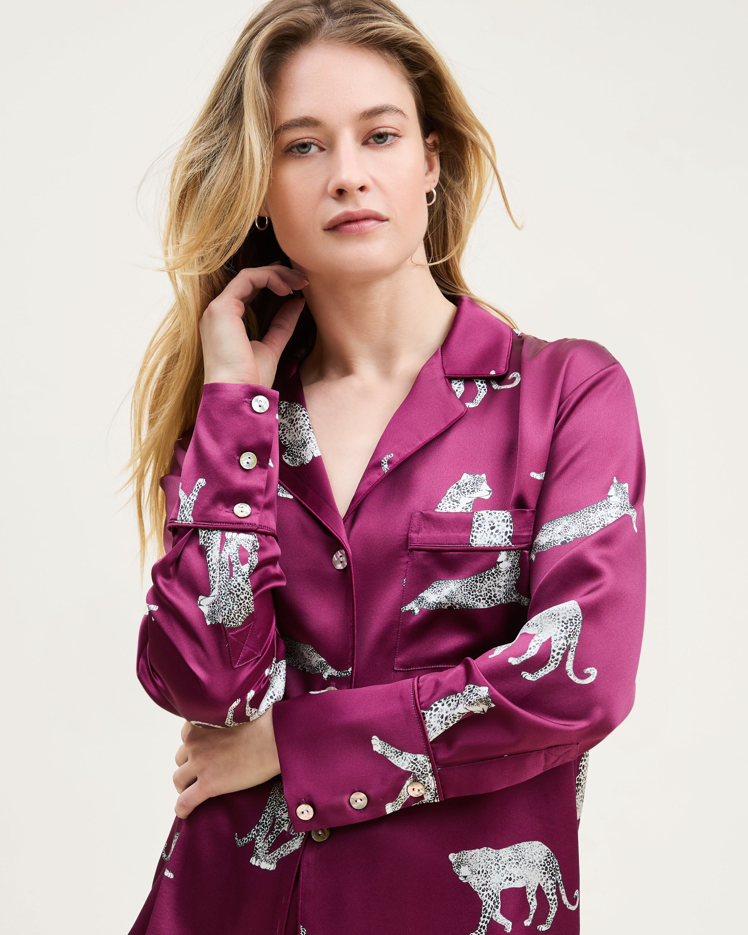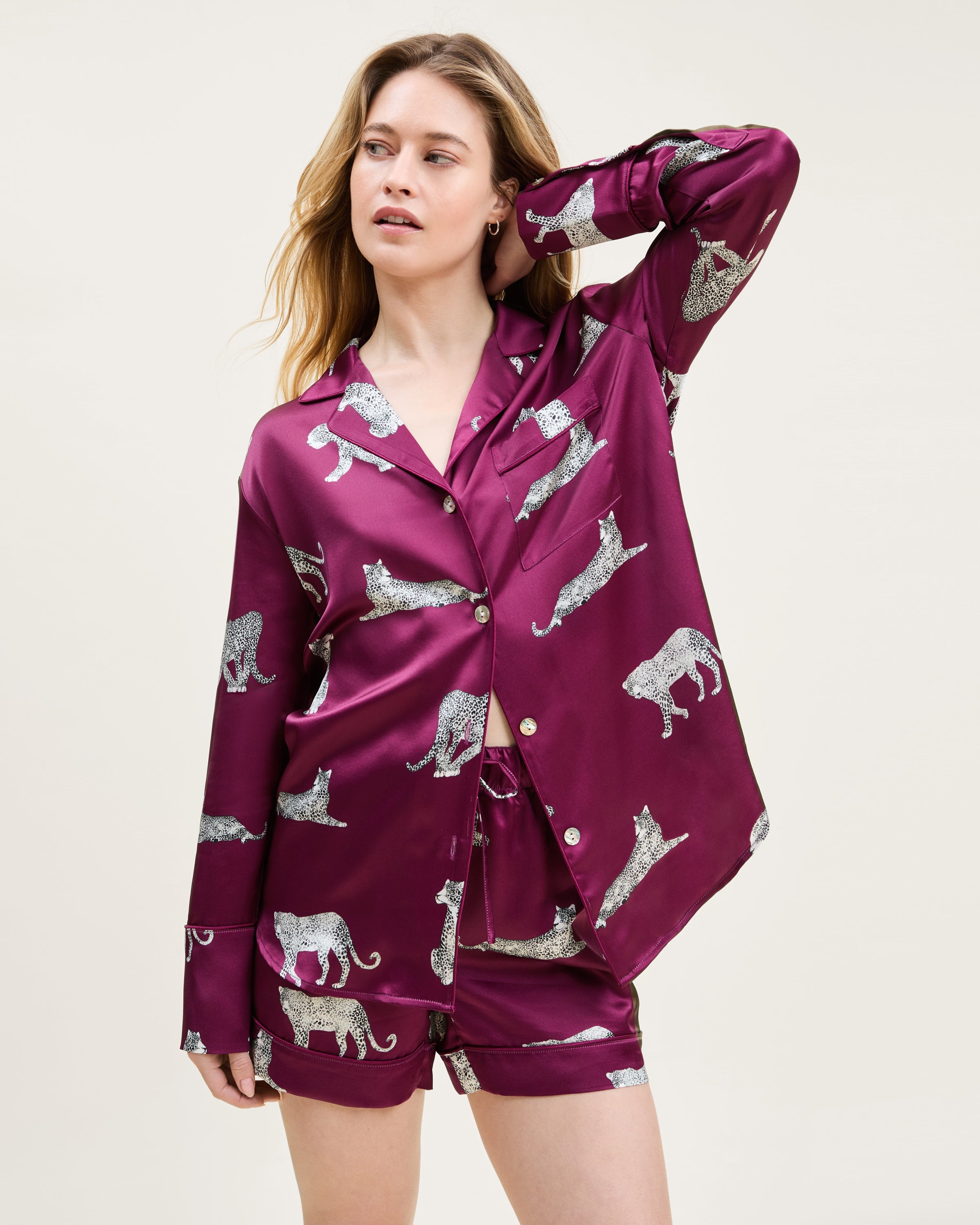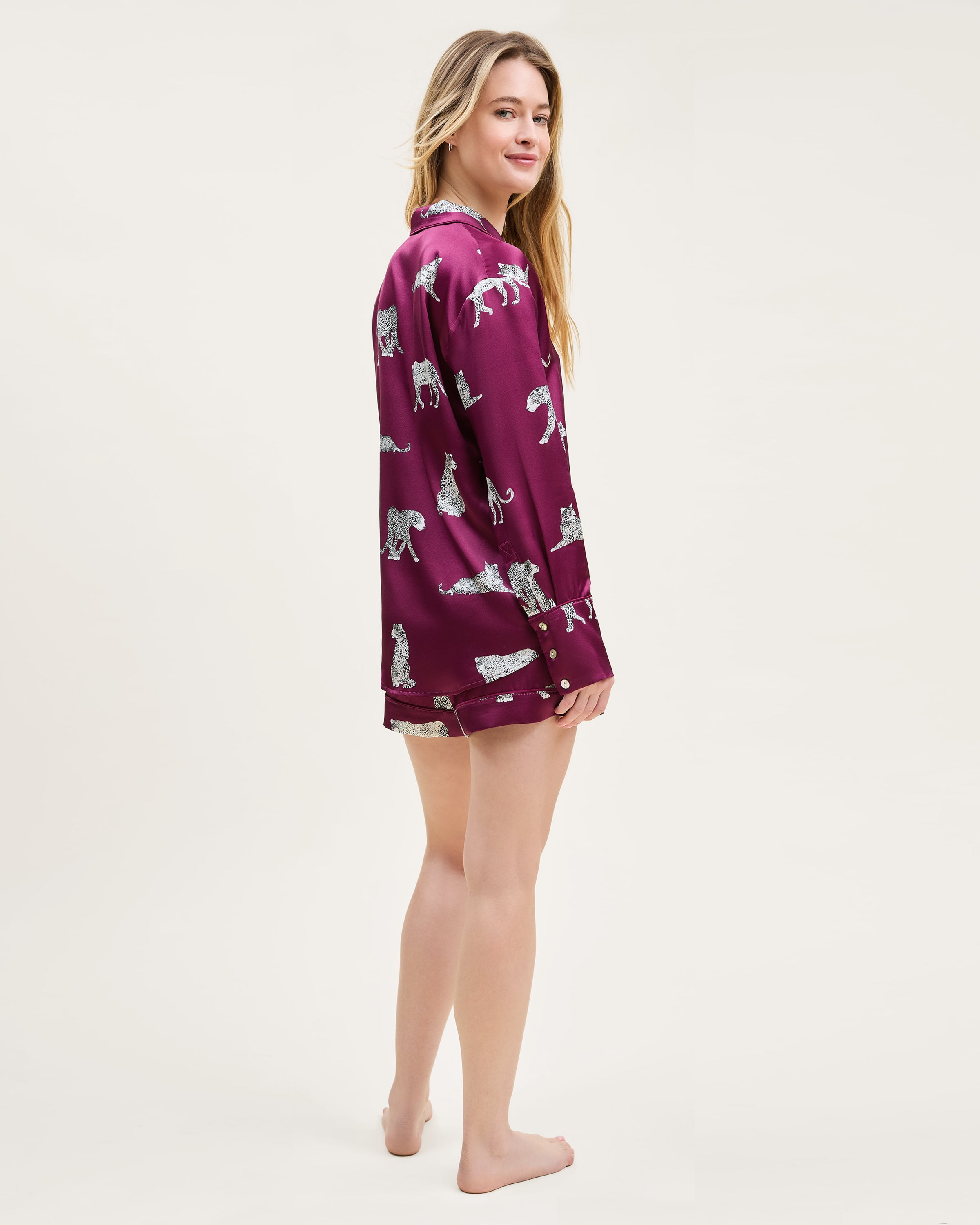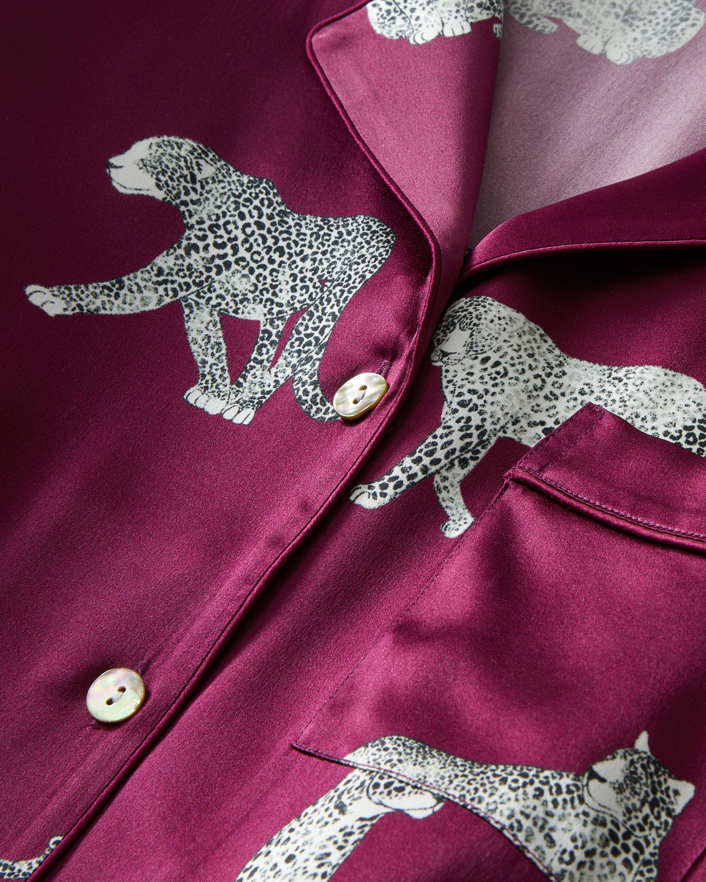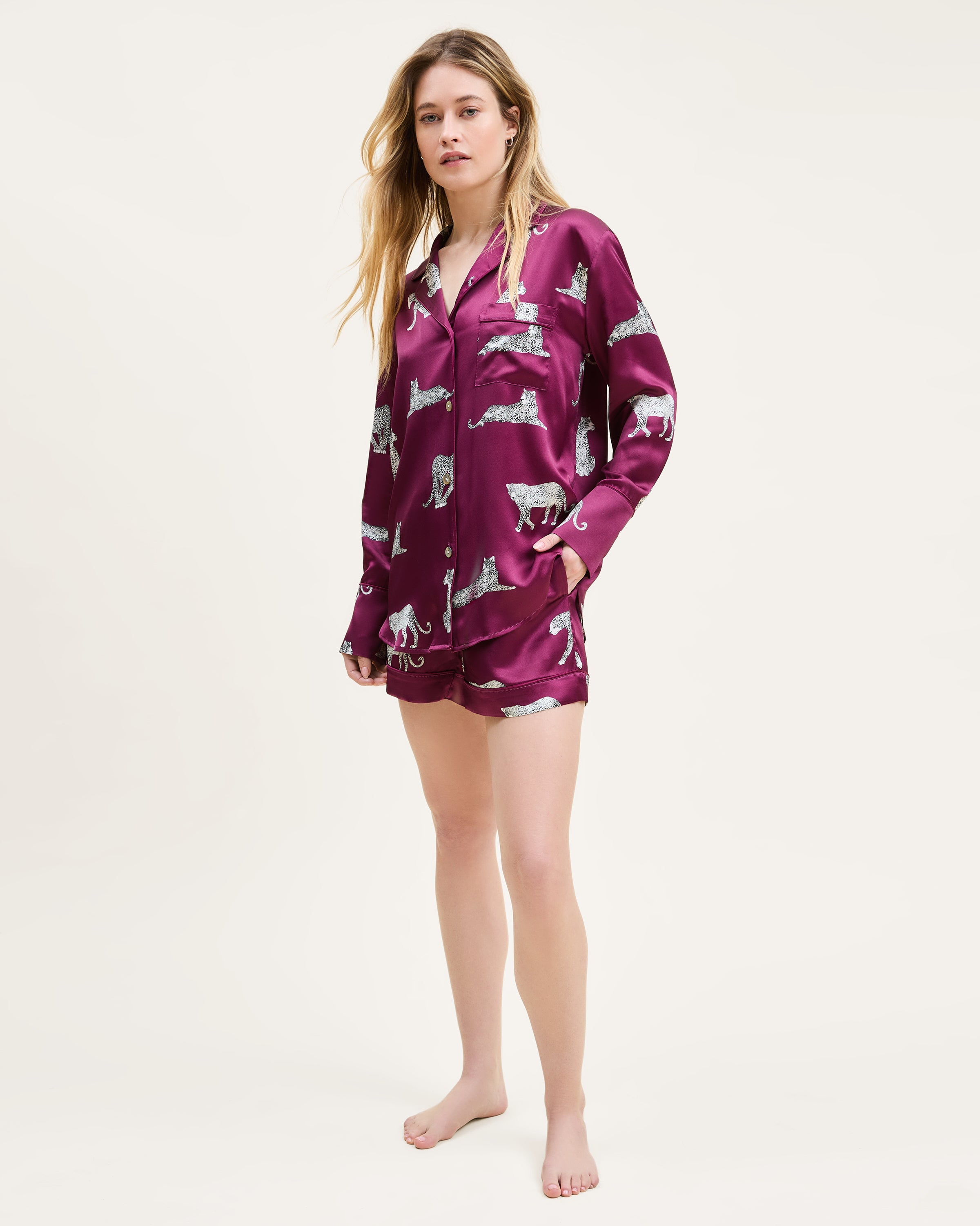 Women's Silk Long Sleeve Short Set in Merlot Panthère