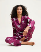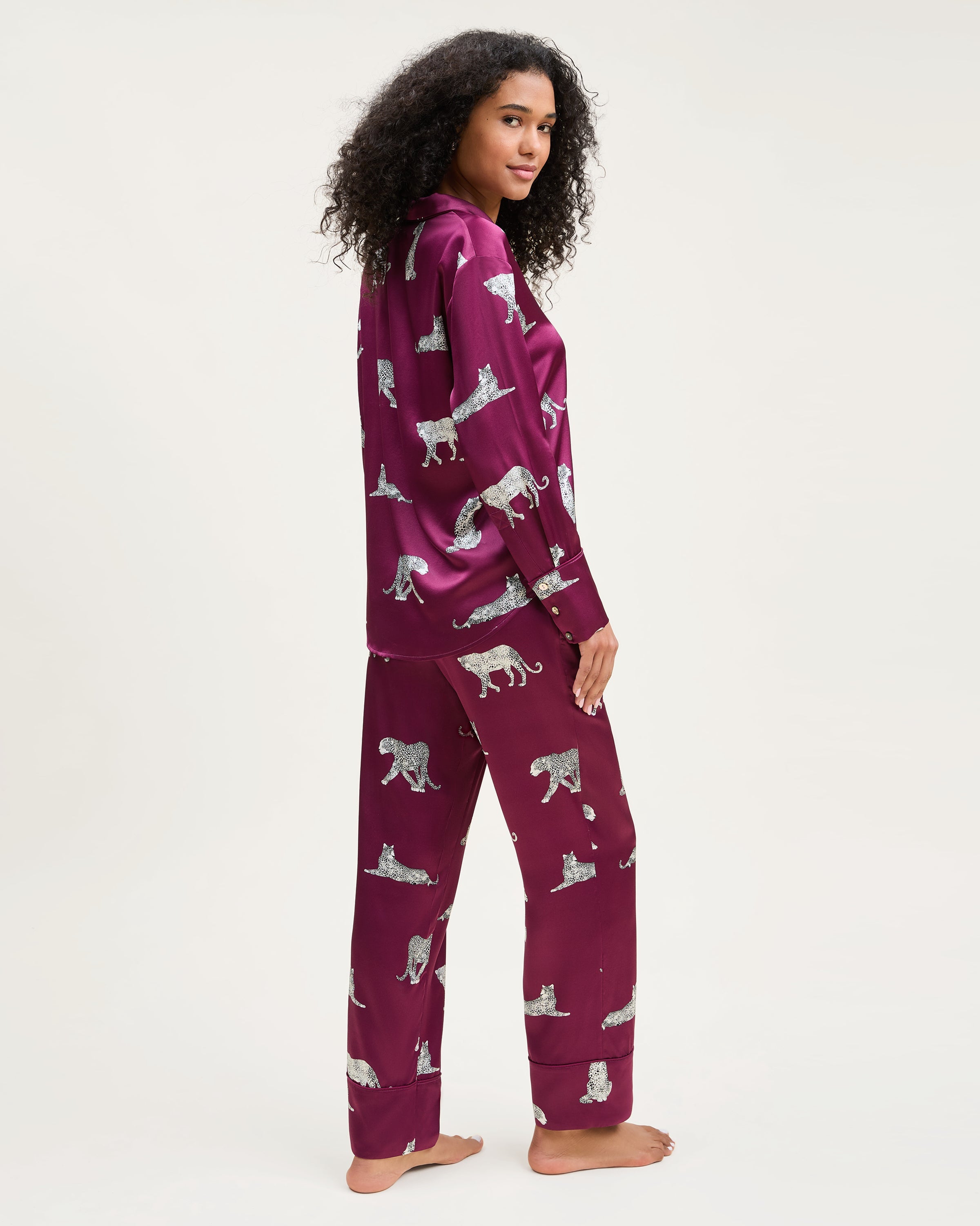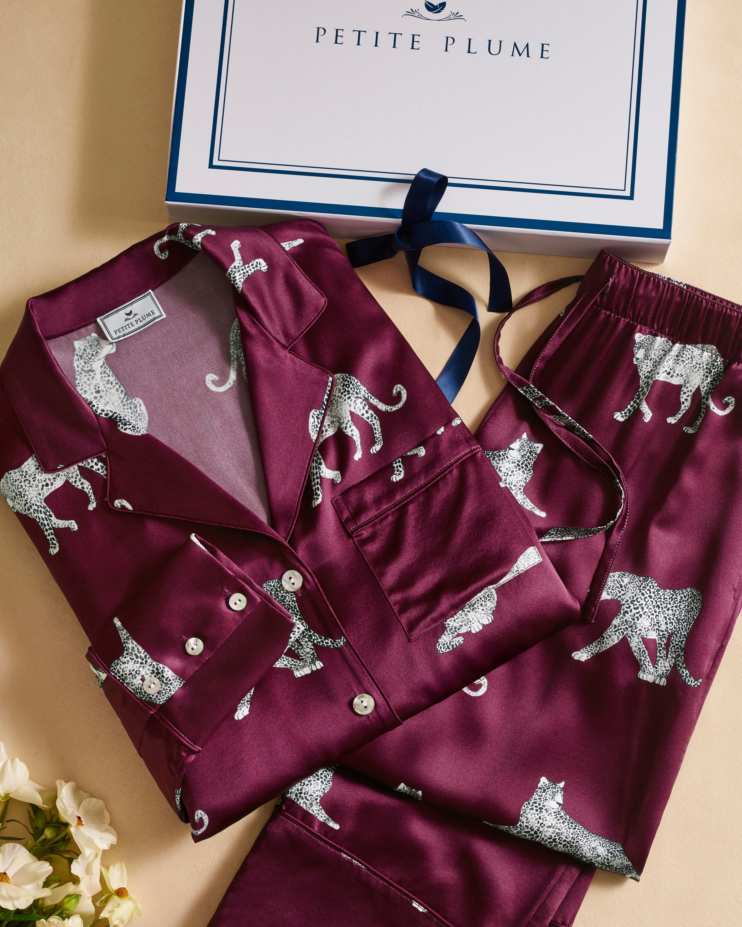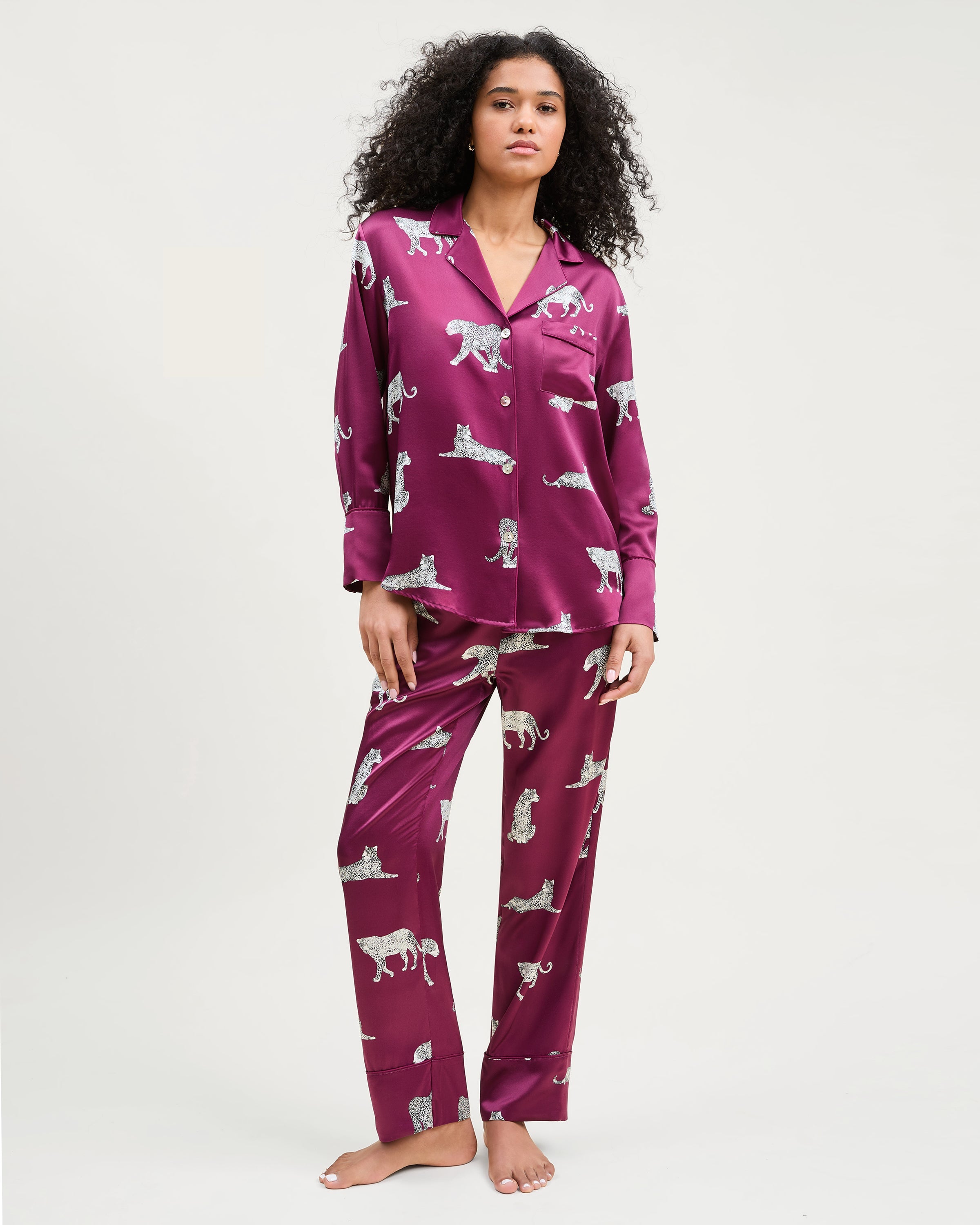 In this hand-illustrated motif, regal panthers slink across a background of jewel-toned, lustrous mulberry silk. Perfect to wear to bed—or out for a special celebration. A timeless, elegant blue shade of lustrous mulberry silk. Ideal for crisp autumn days and nights, and all through the holiday season. The quintessential, timeless pajama silhouette that always feels fresh. As effortless and comfortable as luxury sleepwear gets.